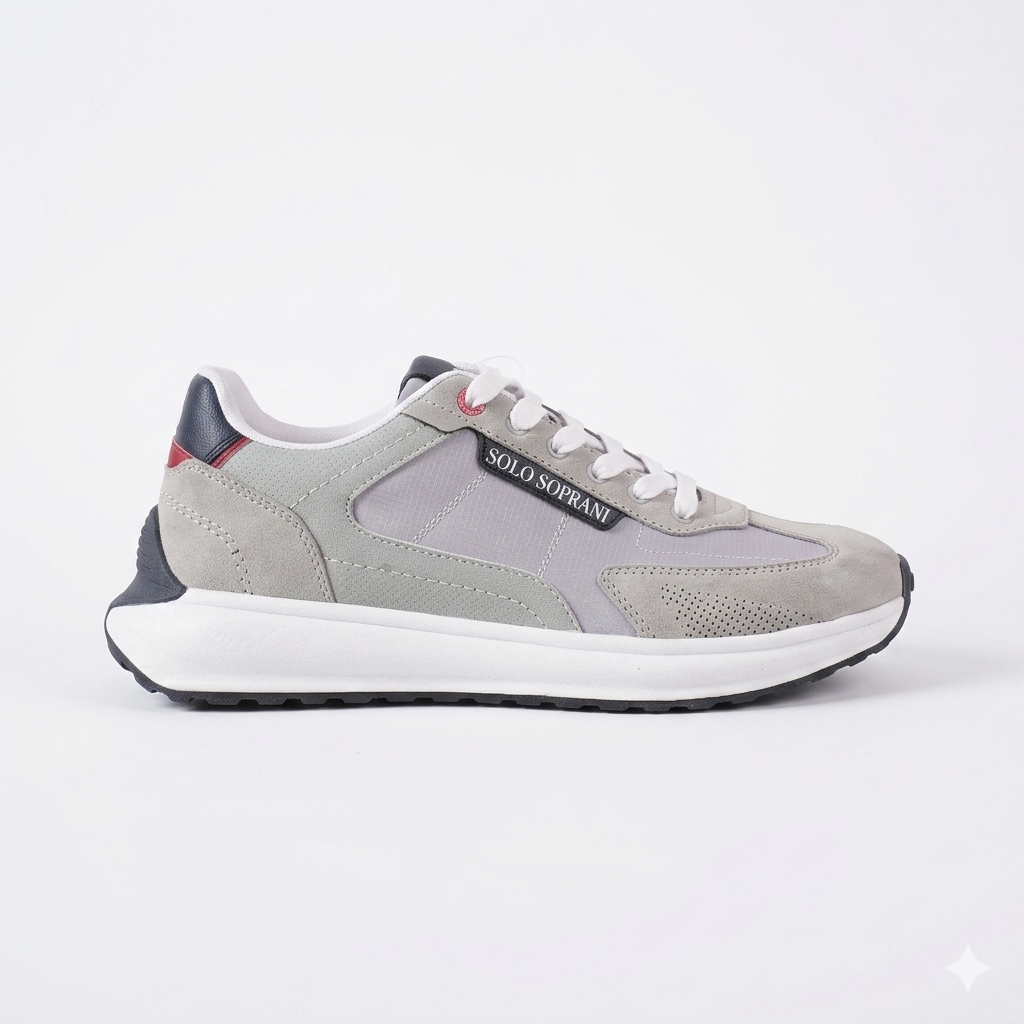 Sneakers Homme Solo Soprani – Baskets Casual Gris Clair Confortables